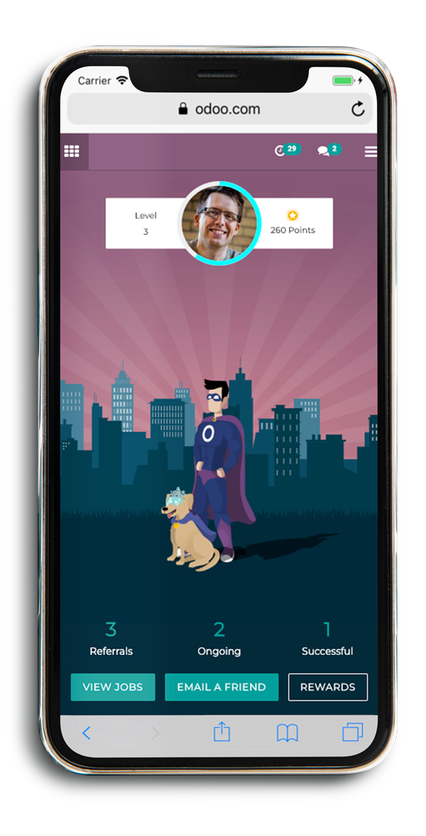 See how many points you've earned for each referral and easily follow your friends progress in the recruitment process.